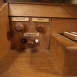 Hammered tin/lead alloy metal pipes, cut or soldered to pitch with tuning bars (good tuning stability)